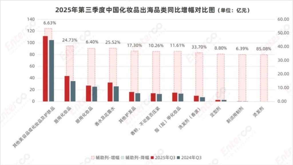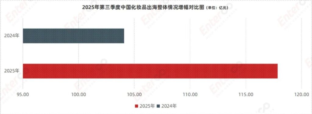 根据中国海关总署数据,2025年7-9月,中国化妆品出口总额为117.85亿元人民币,较2024年同比增长13.24%。