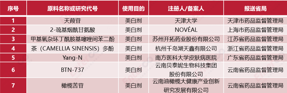 10月20日,中检院发布了《化妆品新原料创新指导品种名单》,共有16款新原料入选,涵盖着色、防晒、防脱、润肤等多个类别。其中,美白剂类原料表现尤为抢眼,共有7款入选,占比近半,预示着我国美白化妆品原料正迎来新一轮技术革新。