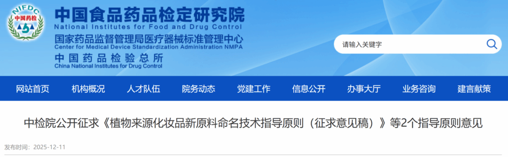 为落实《国家药监局关于深化化妆品监管改革促进产业高质量发展的意见》和《支持化妆品原料创新若干规定》,进一步规范和指导化妆品新原料命名工作,按照《化妆品监督管理条例》《化妆品注册备案管理办法》等相关法规文件要求,中检院起草了《植物来源化妆品新原料命名技术指导原则(征求意见稿)》《发酵来源化妆品新原料命名技术指导原则(征求意见稿)》及起草说明,并向社会公开征求意见。