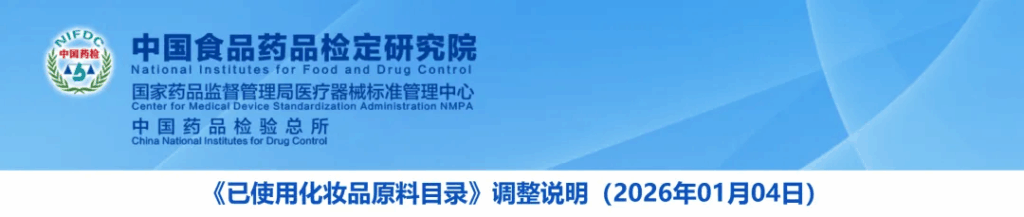 | 19 | 《目录》I:06571 | 炭粉 | 备注:按照《化妆品安全技术规范》要求使用 | 删除备注 | 2026年1月4日 |