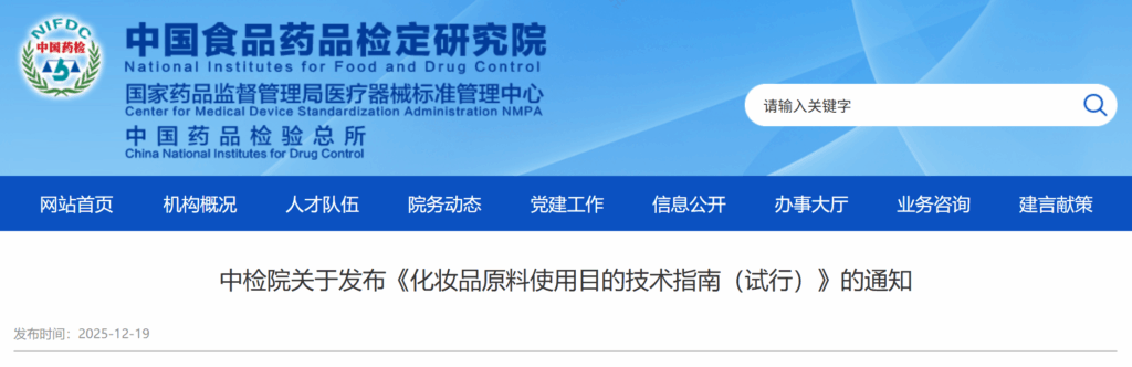 为贯彻落实《支持化妆品原料创新若干规定》,规范化妆品原料使用目的,鼓励原料创新,中检院组织制定了《化妆品原料使用目的技术指南(试行)》(附件),现予发布,自2026年6月19日起实施。