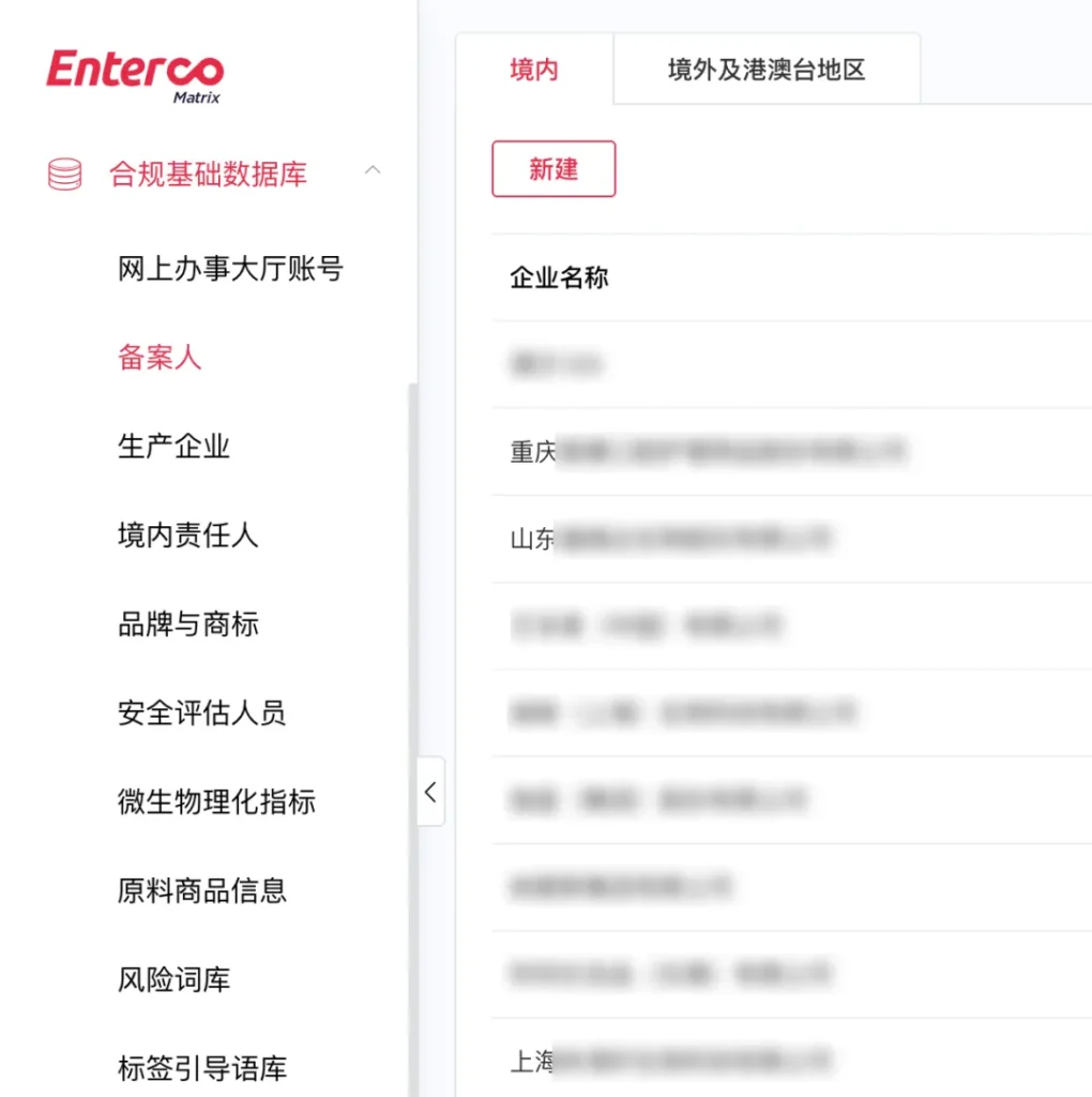 与产品层面不同,合规基础信息库模块侧重于从源头构建“合规管理”的基础平台,包括原料、供应商、生产企业、品牌、评估人员、微生物理化指标等基础数据。
