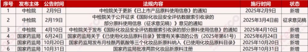 2025年度化妆品原料相关数据更新