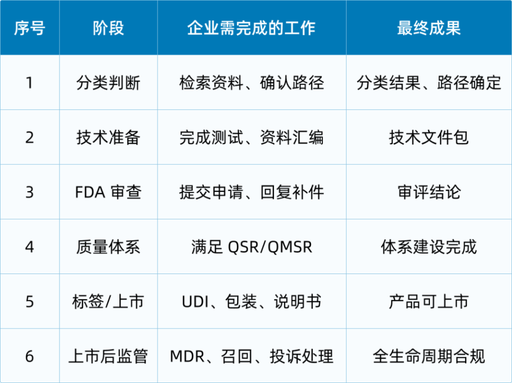 真正进入流程后,企业会发现,美国医疗器械的合规体系是一条覆盖产品全生命周期的路线,从设计、测试、临床,到审查、注册,再到上市后的追踪、投诉与召回管理,几乎没有“空白区”。